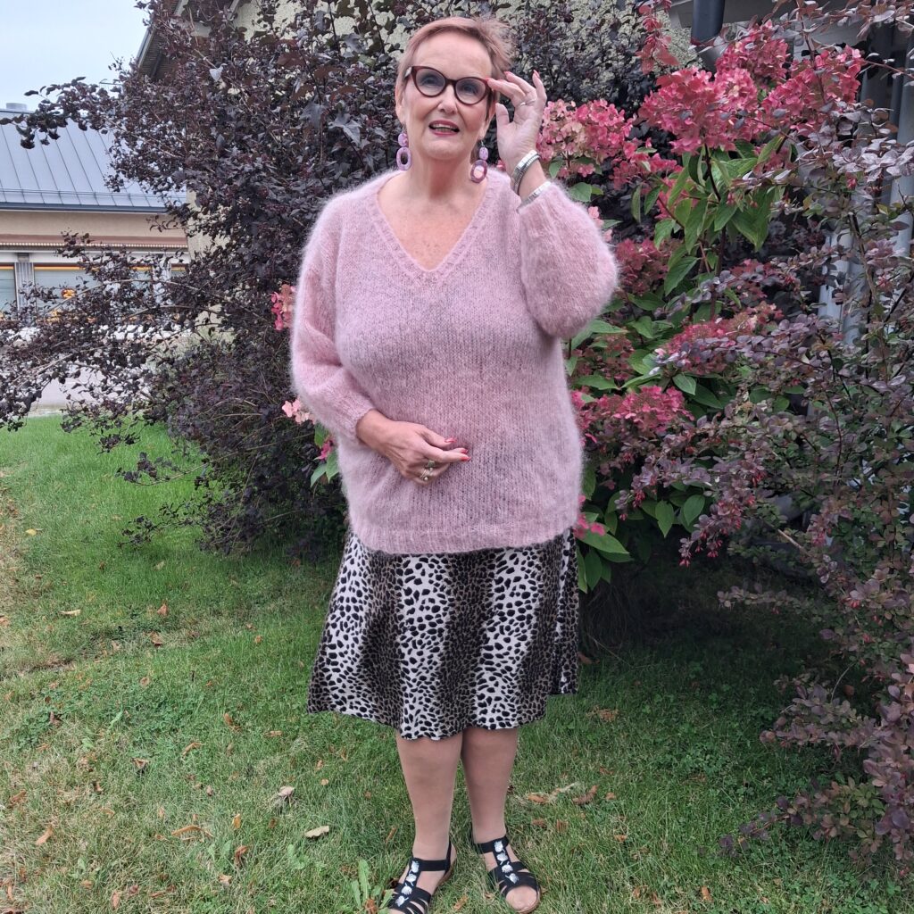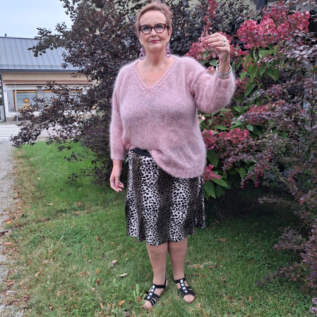 Jo vuoden verran olen haaveillut satiinisesta leopardikuvioisesta hameesta, jonka yhdistäisin muhkeaan pörröpuseroon. Sellaista hametta vaan ei löytynyt viime talvena eikä edelleenkään. En haluaisi ruskeaa, vaan siniharmaakuviollisen. Mistään ei löydy oikeaa kokoa, eikä edes kangasta, josta olisin itse ommellut sopivan hameen. Nyt kun etsin tähän kuvaa siitä, mitä tarkoitan, en sellaista löydä – että mistähän tuo alkuperäinen inspiraatio lienee tullut? Tässä toinenkin muutostyö.
