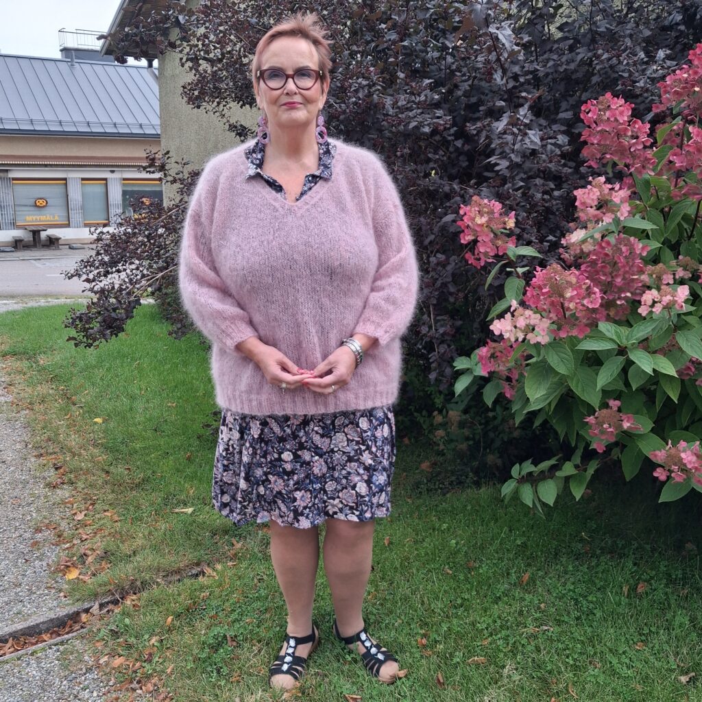 Vaikka tuo pörröneule on hurjan kevyt ja harvaan, isoilla puikoilla neulottu, on se todella lämmin. Näin lämpimänä syyspäivänä liian lämmin, mutta talvella sitten.