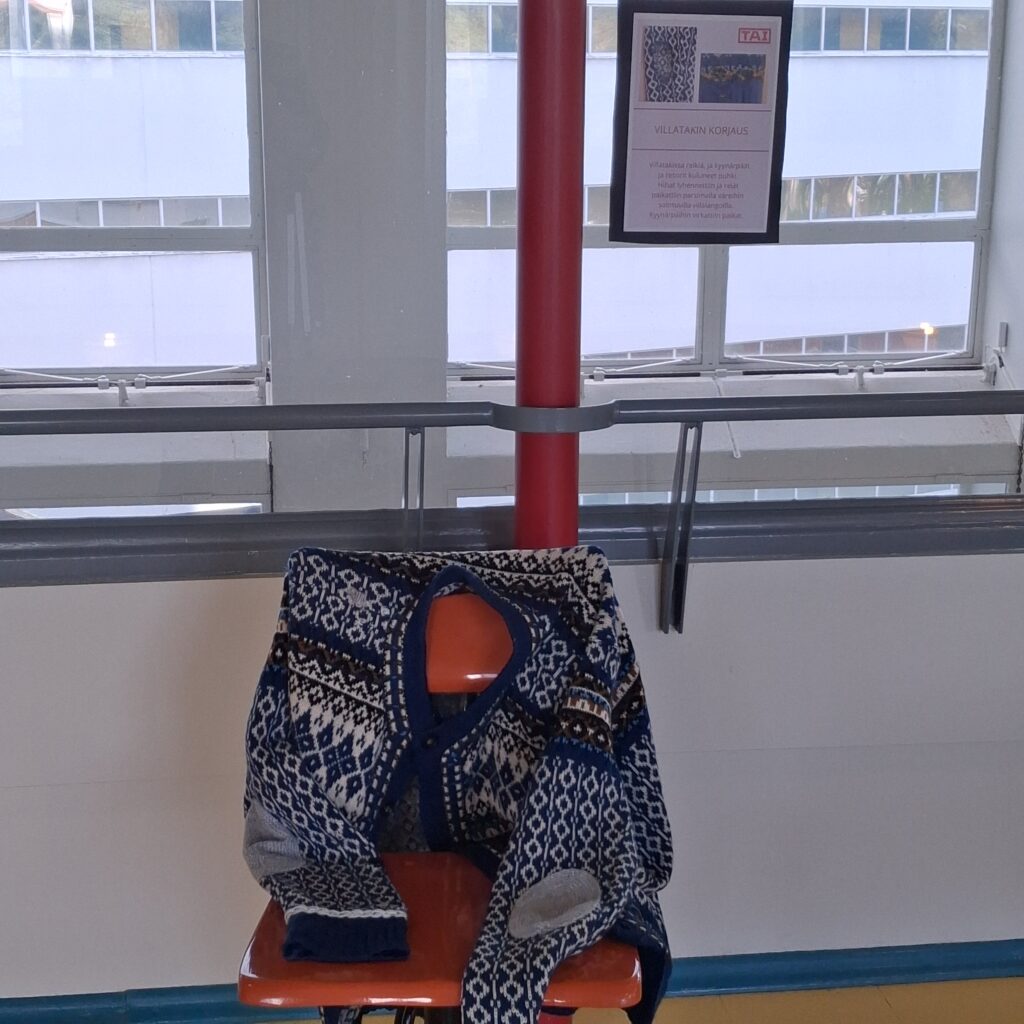 Seuraavaksi tutustuimme vaatteitten korjaustapoihin. En kaikkia tokikaan kuvannut. Oli paikkausta ja kirjontaa.