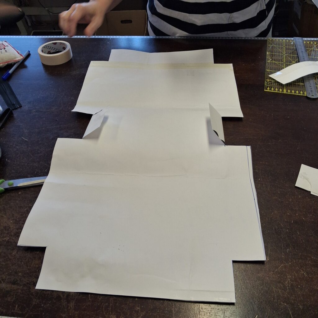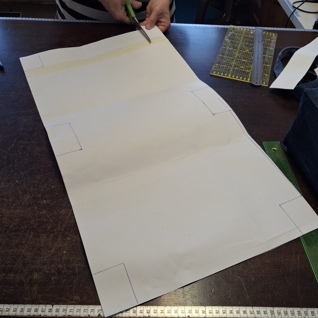 Erittäin huolellisesti suunnittelimme avustajan kanssa kaavan. Meinasi jo kinasteluksi mennä, kun emme millään tahtoneet päästä yksimielisyyteen, miten tehdään tällainen yläosa ja malli sellaiseksi, että kassi on yhtä leveä ylhäältä kuin on alhaaltakin.