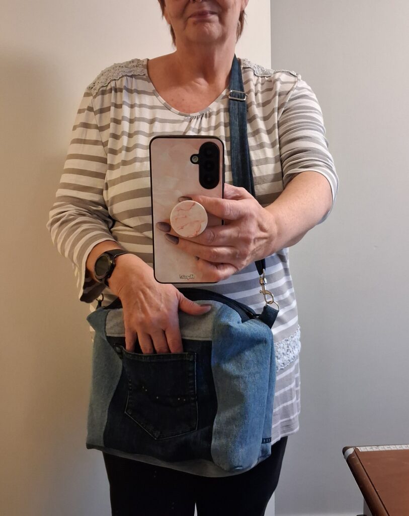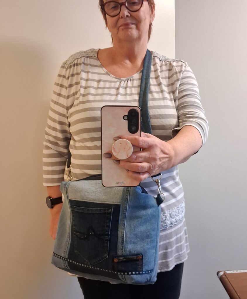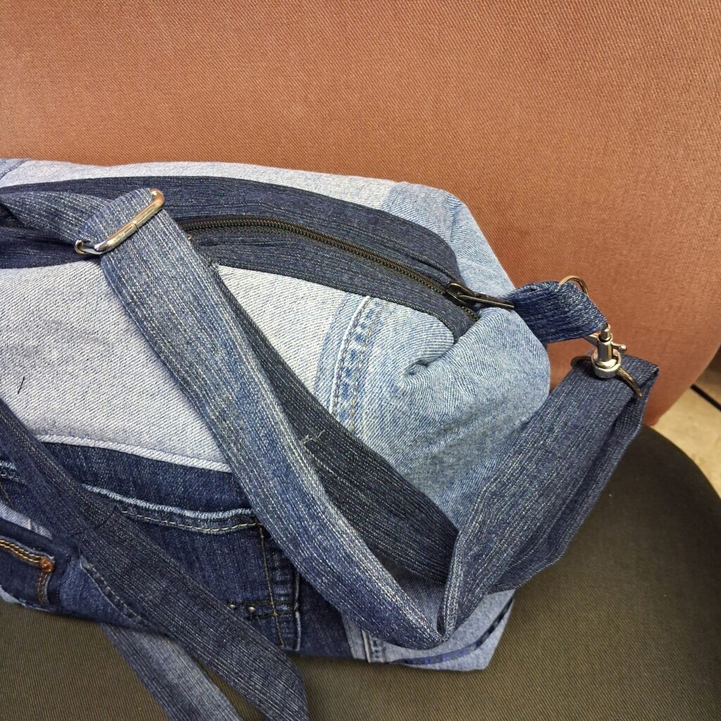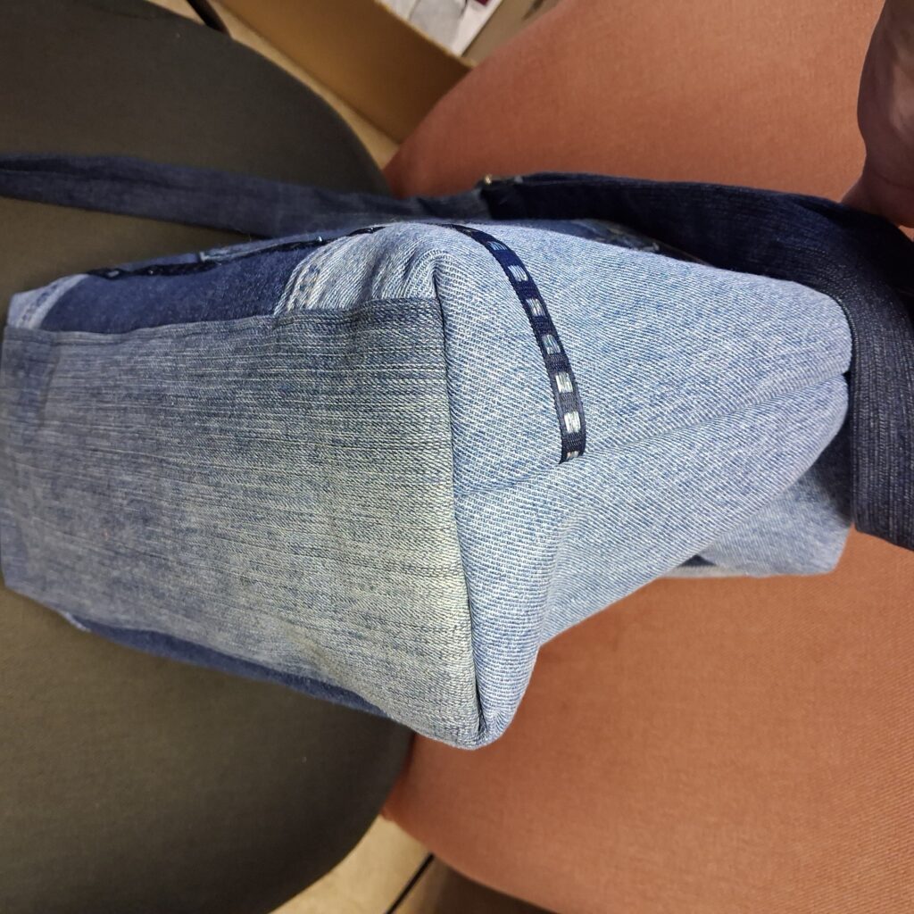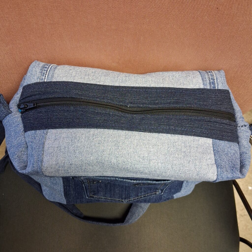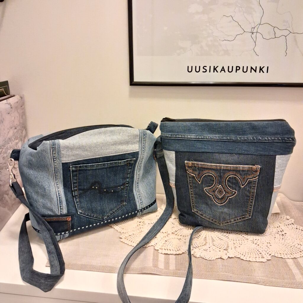 Ehkä nyt jo riittää? Farkkutilkkuilua on tullut tehtyä… Piti vielä kokeilla erimaillinen vetoketjukiinnitys. En kylläkään ole siihen tyytyväinen, joten jäänee ainoaksi. Tämä on siis jo kolmas olkalaukku farkkutilkuista. Ensimmäinen on aivan liian ”rento” minun makuuni, toinen on todella hyvä ja joka päivä käytössä, tästä en osaa sanoa…