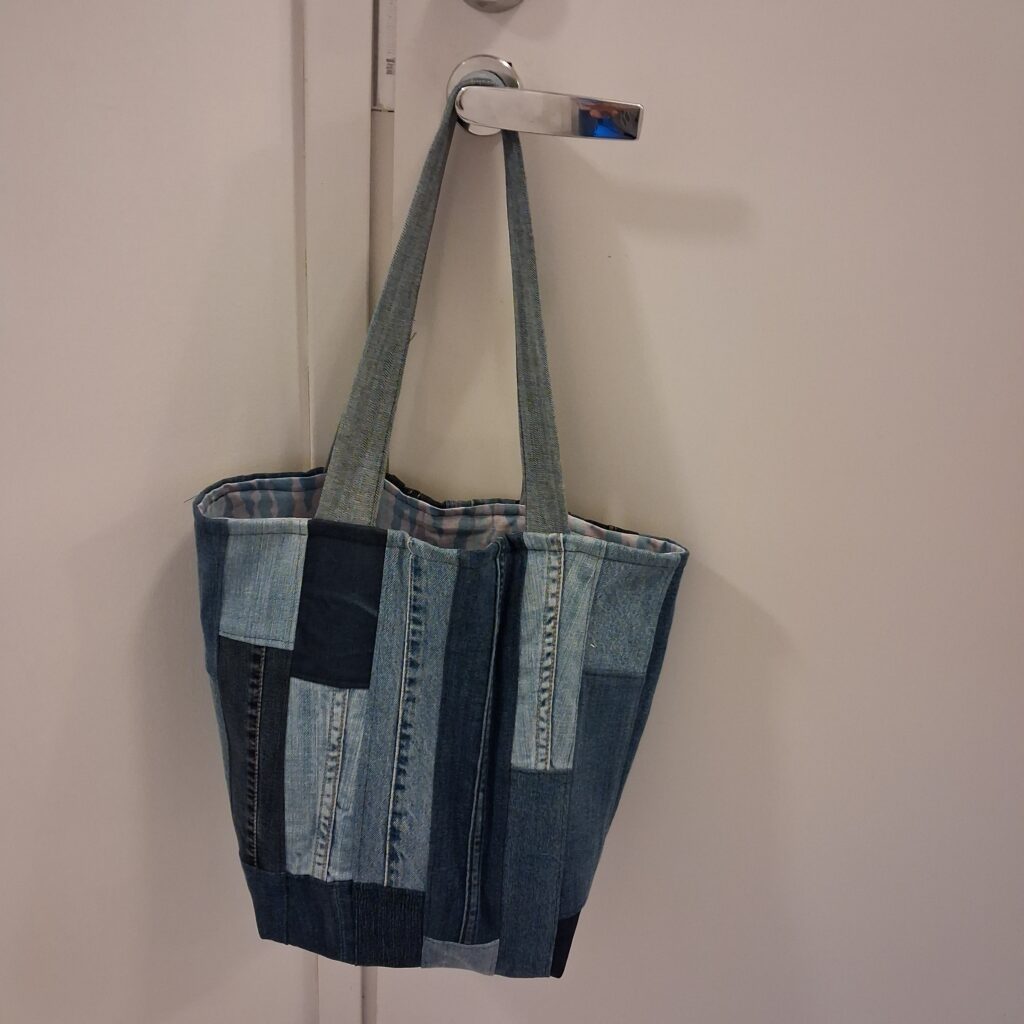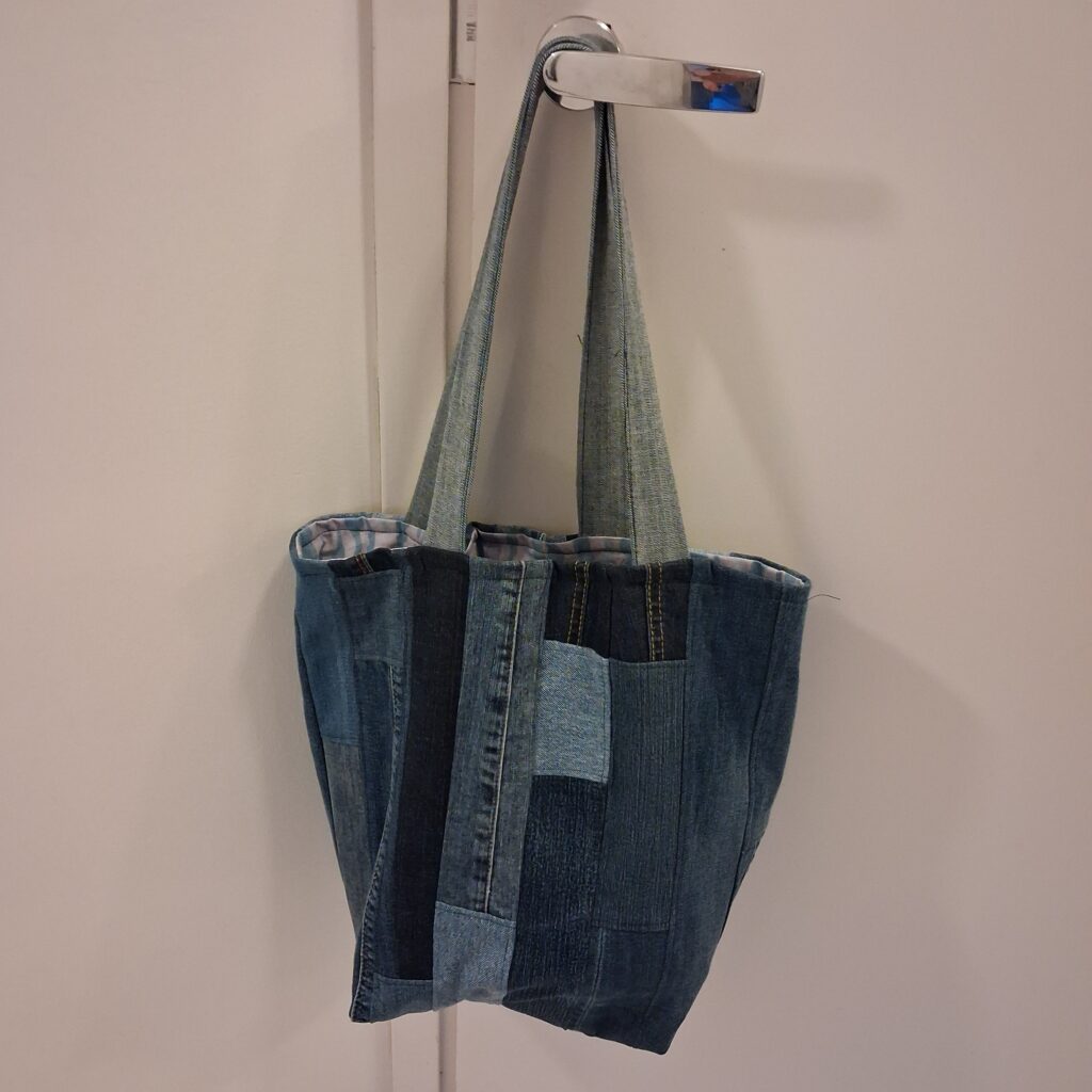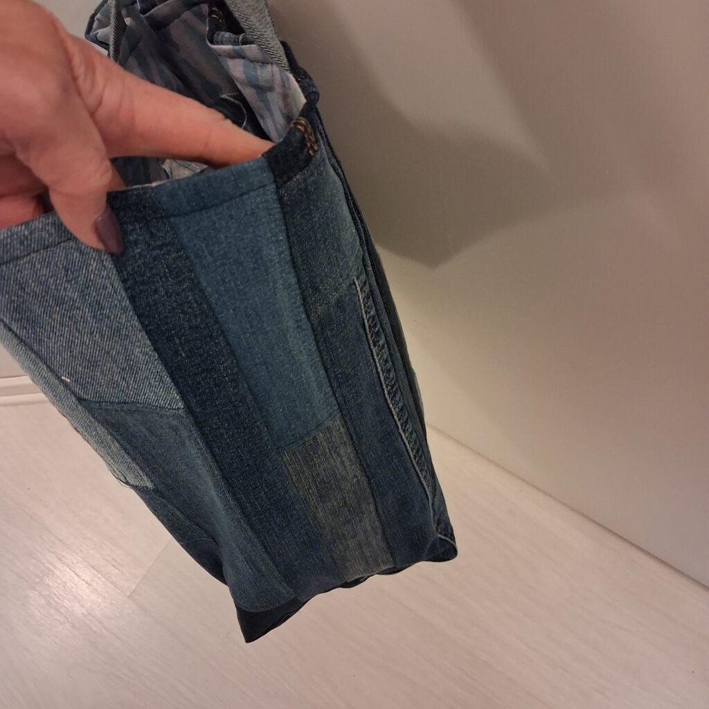 Olenko jo kirjoittanut, että mielestäni farkkutilkkuja on tosi kiva ommella. Joskus tein tällaisiakin.
