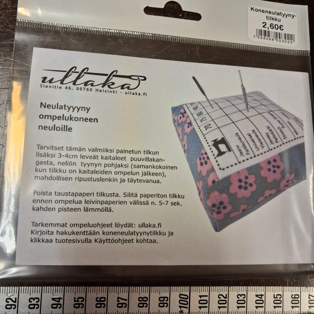 Tää juttu on ihan huippulöytö. Näytän siitä paremman kuvan, jahka ”teen” sen valmiiksi. Se on neulatyyny ompelukoneen neuloille. Mulla menee aina sekaisin, mikä neula koneessa milloinkin on, enkä näe niiden merkintöjä.