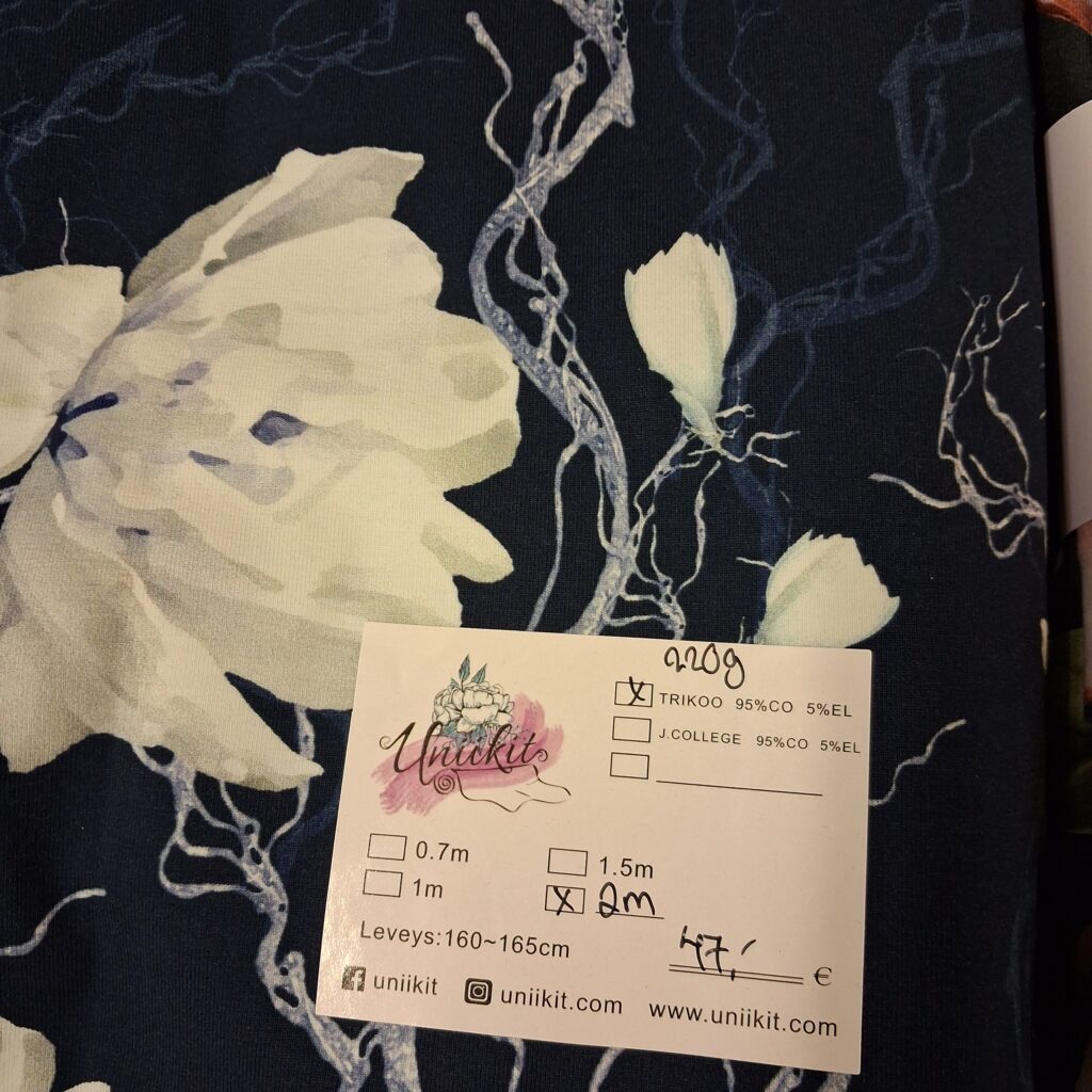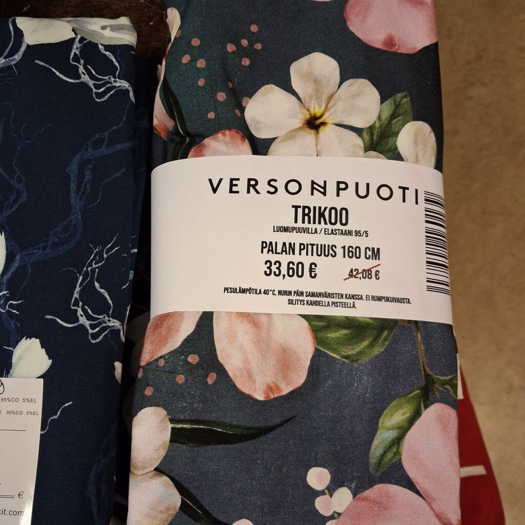Sinisistä kukkakankaista tulee tunikat itselle. Verson puoti trikoo ja Uniikit trikoo