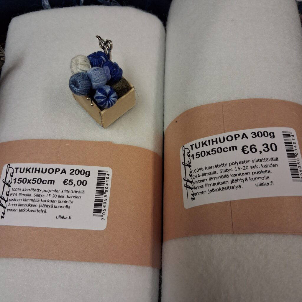 Valkoiset tukihuovat on omiin laukkuprojekteihin.