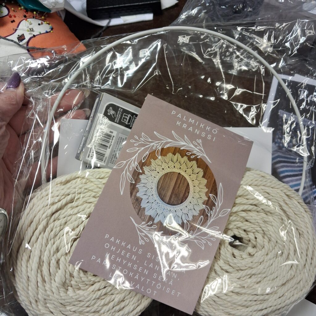 Tämä makrame-tarvikepaketti näytti mun silmään uudelta. Tosi kaunis kranssi. Se on Suomen Lanka Oy:n, mutta niin uusi tuote, ettei vielä netistä löydy.