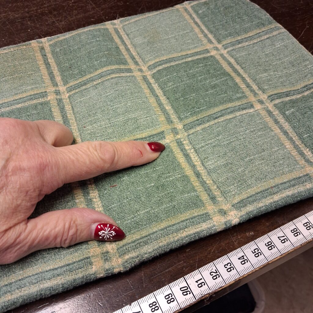 Tästä muuten toimivasta, mutta myttyräksi muuttuneesta pannunalusesta Jouduin avaamaan päällikankaan yhden sivun, oikomaan sisämateriaalin ja ompelemaan aukon uudestaan kiinni.