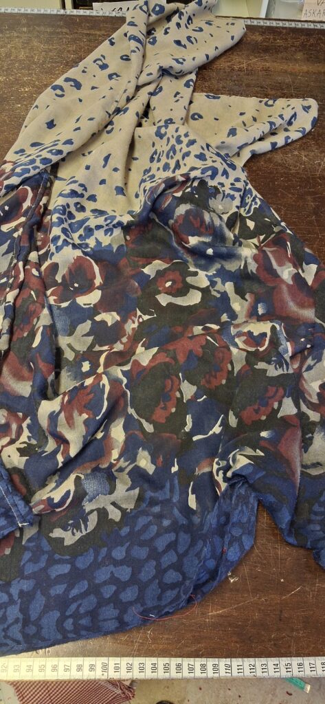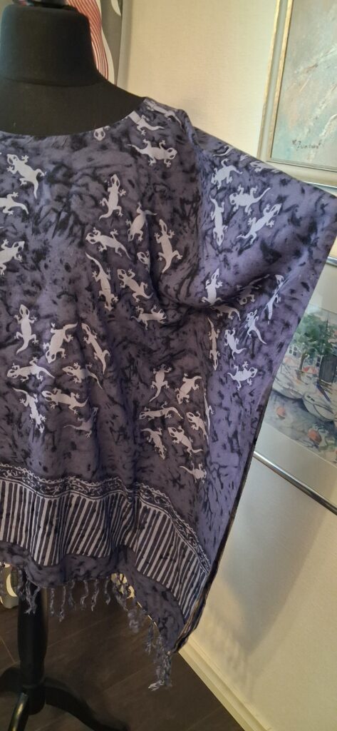 Kaksi isoa huivia oli myös tullut matkassani kierrätyksestä ja niistä ompelin huitulat.