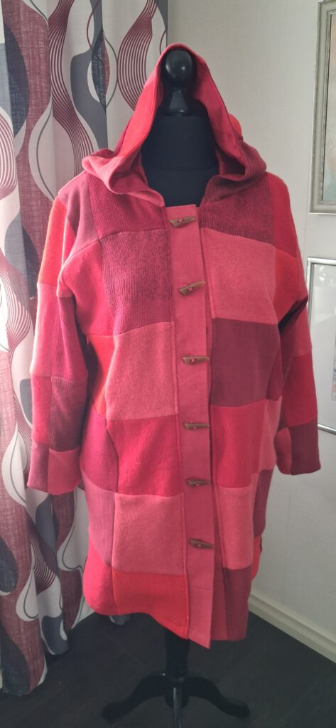 Ihanat vapaapäivät! Olen viettänyt ne pääsääntöisesti ompeluhuoneessa. Ja nauttinut! Kierrätystuotteitteni valikoima lisääntyy ja nyt olen saanut valmiiksi taas uusia tuotteita: neuletakki ja pari huitulaa…