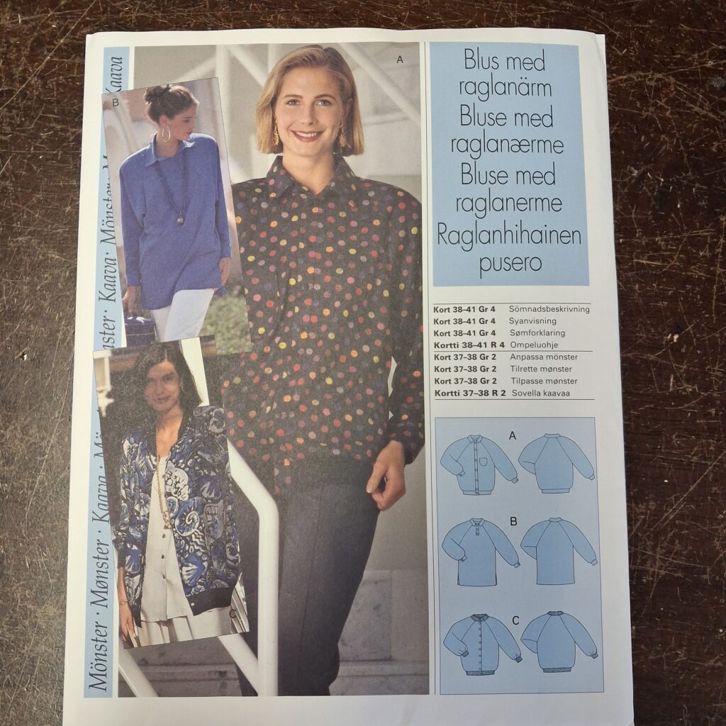 Mistä löytäisin kaavan – sehän on se ensimmäinen ongelma. Hyvin pienellä vaivalla löysin kirjahyllystäni ehkä 80-luvulla ilmestyneen ”Onnistu ommellen” –kansiosarjan. Sielläpä oli kaavat Raglanhihaiseen puseroon. Juuri sellainen jakku, mitä olin ajatellutkin!