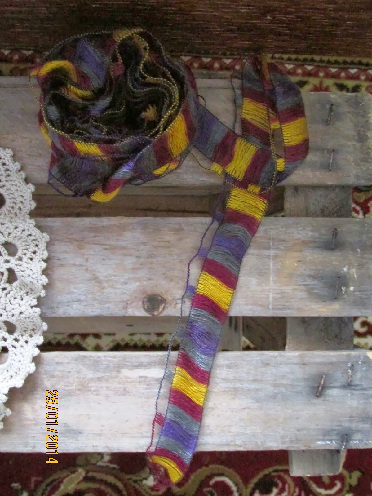 Juuri nyt meillä on pengottu laatikoita ja pussukoita ja mieheni täyttää par’aikaa autoon tavaraa. Huomenna on myyntitapahtuma työväentalolla, jonne Pellavasydänkin pöytänsä kattaa. Röyhelölankoja saisi nyt alkaen 1,-/kerä. Kuka sitten keksii mitäkin niistä tehdä.