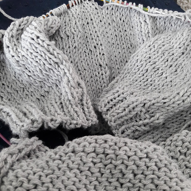 Pipon tekemisessä minulla on pieni puikkoprobleema. Haluaisin neuloa pyöröpuikoilla ja meillä toki on valikoimaa runsaasti. On 40 cm, 50cm ja 60 cm pitkiä tai vastaavat vaihtopäillä. Mutta kun en ollenkaan tykkää/pysty neulomaan semmoisilla pätkäpuikoilla. Ja sellaiset lyhyet väistämättä on 40 ja 50 cm pitkissä, koska tavismittaisilla ei ”mahdu” neulomaan. Saattaa olla, että käteeni osui vähän liian paksut puikot, kun lopputulos on aika harvaa, eikä oikein tasaistakaan. Mutta olkoon niin, että se kuuluu tällaiseen rouheahkoon pipoon…