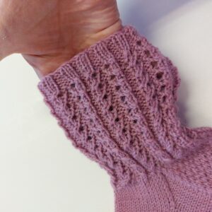 25.00€ Lisää ostoskoriinLämmin villasukka, jonka resoriksi neulotussa varressa punertavia raitoja.