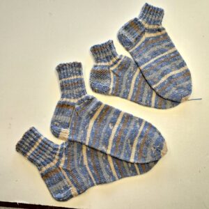 Sinisen ruskean raidallinen sukkasetti miehelle ja naiselle,