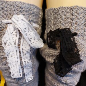 Edessä leveämpi pitsikuvio, takana kapeampi