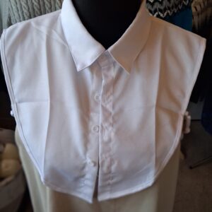 Kauluksessa on edessä napit, voit siis pitää sitä joko ylös asti napitettuna, tai haluamallasi tavalla nappeja aukaisten.
