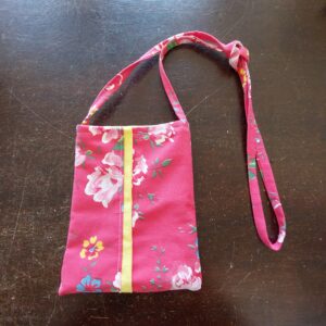 Iloisen värinen ja reilun kokoinen pussukka kännykälle, passille tms.