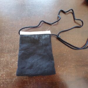 Hihna niin pitkä, että yltää pään yli heitettäväksi, mutta sitä voi säätää lyhyemmäksikin.