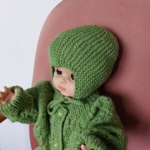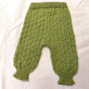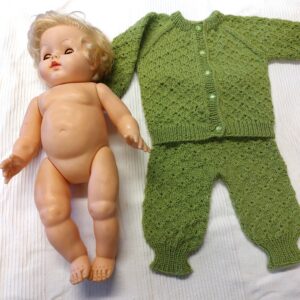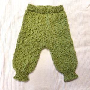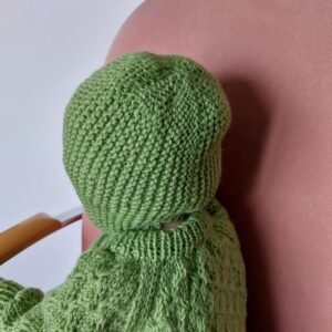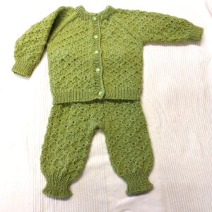 Raikkaan vihreä neuleasu vauvalle. Käsin neulottu. Lanka on norjalaista 100 % villaa.