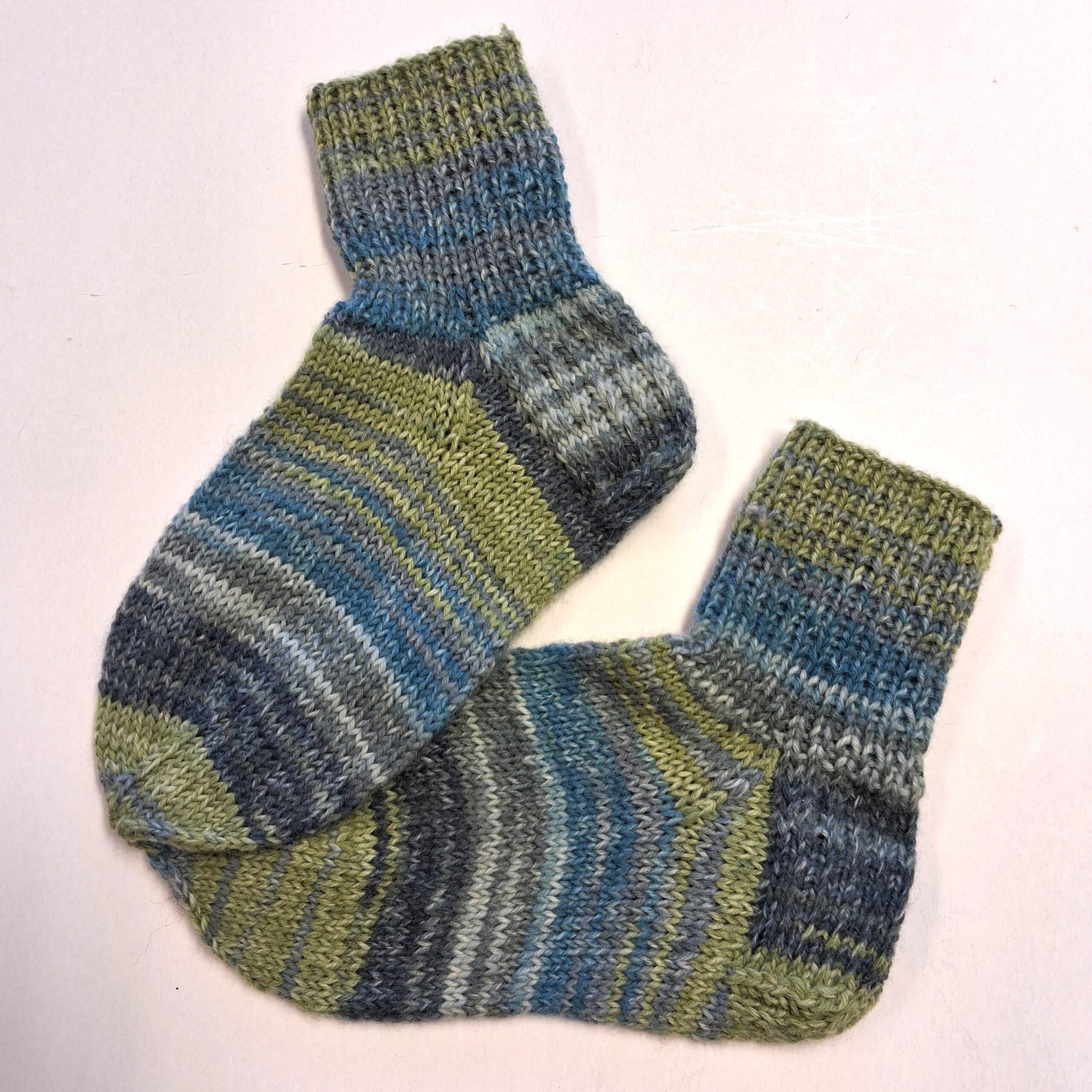 Liukuvärjätystä langasta neulotut, kutiamattomat villasukat.