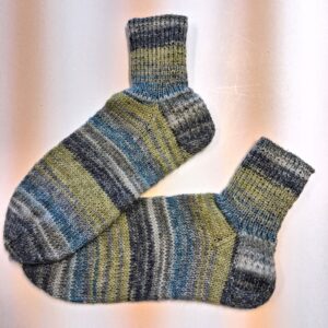 Liukuvärjätystä langasta neulotut, kutiamattomat villasukat.